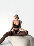Пропонуємо розкішний комплект жіночої білизни.Бюстгальтер-топ з м’якою чашечкою, прикрашений витонченим прозорим мереживом, створює спокусливий образ. Широкий крій забезпечує комфортну посадку, а зручні бретелі з регуляторами дозволяють ідеально підігнати розмір. Стильна блискавка по центру додає особливого шарму та спрощує застібання.Трусики середньої посадки підкреслюють лінії фігури та гармонійно доповнюють комплект.