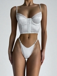 Одягнувши цю білизну один раз, всі інші стануть поза конкуренцією. Корсетний топ з застібками на гачках, чашечка має зйомний поролоновий вкладиш, шлейки з регуляторами. Трусики завищеної посадки. Комплект з люкс сегменту якості.