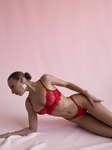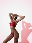 Вражаючий мереживний комплект, що поєднує витонченість і звабливість. Комплект складається з бюстгальтера, трусиків стрінгів та гартерів. Особливістю є зйомна шлейка, яка легко перетворюється у стильний чокер з регулятором – для зручності та індивідуальної посадки.